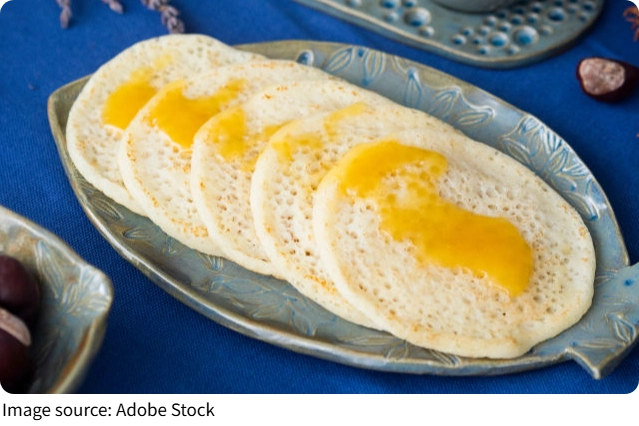 Chúng tôi rất thích chuẩn bị sẵn Baghrir để có một bữa sáng hoặc bữa ăn nhẹ nhanh gọn — món bánh này thật sự linh hoạt và tiện lợi.