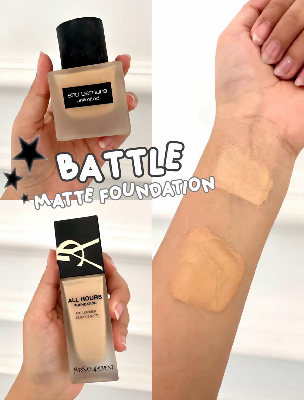 Both foundations deliver the polished, long-lasting results expected from high-end makeup. YSL All Hours Foundation stands out for its full coverage, long wear, and luminous matte finish that still looks radiant. Meanwhile, Shu Uemura Unlimited Breathable Lasting Foundation is loved for its thin texture and elegant matte effect that feels light on the skin.