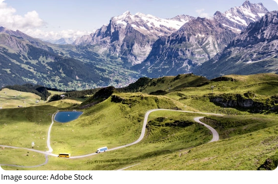 - Panoramic views of Bernese Alps within 100 miles