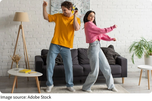 Example: A person who dances regularly, whether in a class or at home, might find themselves in better shape overall without feeling like they're “working out.” It's simply about moving to the music and enjoying the experience.