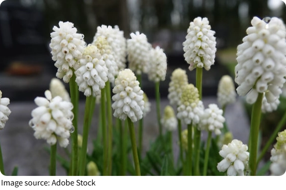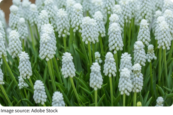 Hoa lục bình trắng là các giống thuộc chi hoa lục bình, đặc biệt là những dạng hoa trắng của loài hoa lục bình armeniacum hoặc các loài liên quan. Đây là loài cây thân củ sống lâu năm, thường cao khoảng 10–20 cm, tạo thành những chùm hoa nhỏ hình bầu giống như từng chùm nho. Lá của cây mọc vào đầu mùa xuân và sẽ dần tàn sau khi hoa nở, nhường chỗ cho các loài hoa xuân khác tỏa sáng. Tên gọi hoa lục bình có nguồn gốc cổ xưa, thường liên quan đến hương thơm nhẹ đặc trưng của nhiều giống trong nhóm này, gợi lên nét quyến rũ tinh tế và dễ chịu.